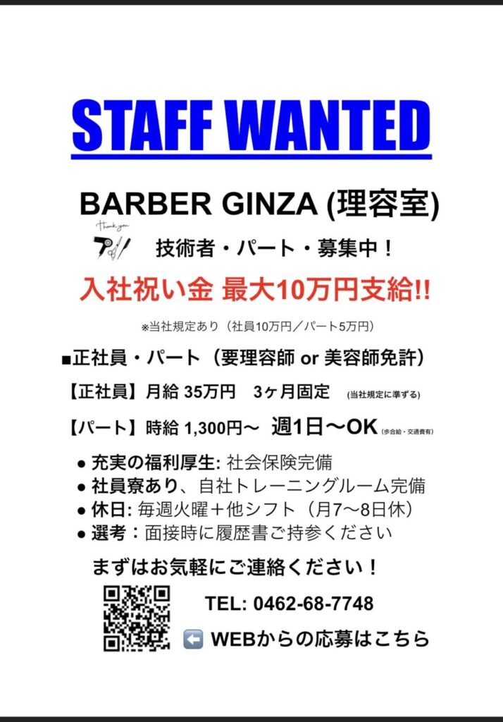 ⭐️短時間アルバイトも募集しております⭐️入社お祝い金企画も実施中!#横浜市泉区理容室銀座#横浜ビューティーアート#横浜fカレッジ#町田美容専門学校#山野美容専門学校#早見芸術学院#Y校別科#山野芸術短大#横浜国際ビューティーカレッジ#湘南ビューティーカレッジ#スタッフ募集#相鉄線いずみ中央駅社会保険完備#交通費支給#盲導犬